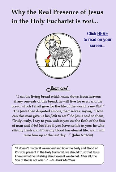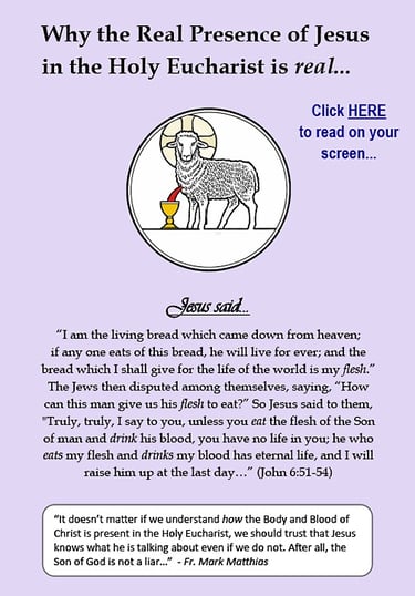 Below are two excellent books by Dr. Scott Hahn and Dr. Brant Pitre that explain why Jesus is the Sacrificial Lamb who is truly present in the meal of the Holy Mass. They also explain why we must "eat the lamb" to complete the ritual of giving thanks to God, and having our sins forgiven. Jesus, the obedient Son of God, simply followed the commands given to us by God the Father in the Old Testament--and he expects us to do the same! (Please see, Matthew 6:5-19, CCC 2837.)